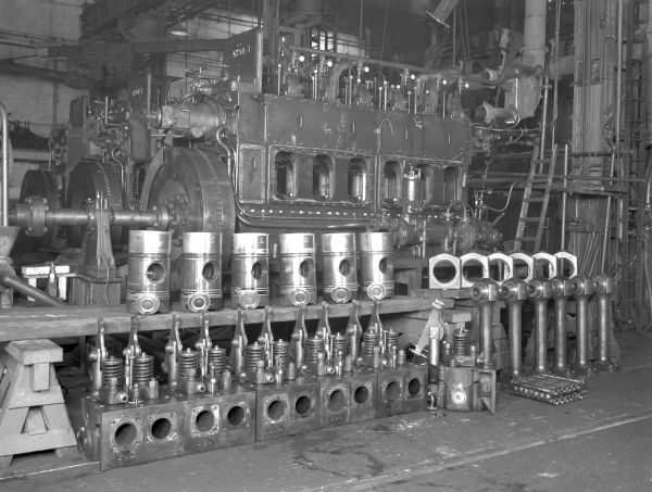 - Photograph, Harland and Wolff. Subject : 45/28C DIESEL GENERATING ENGINES IN FINNIESTON WORKS.