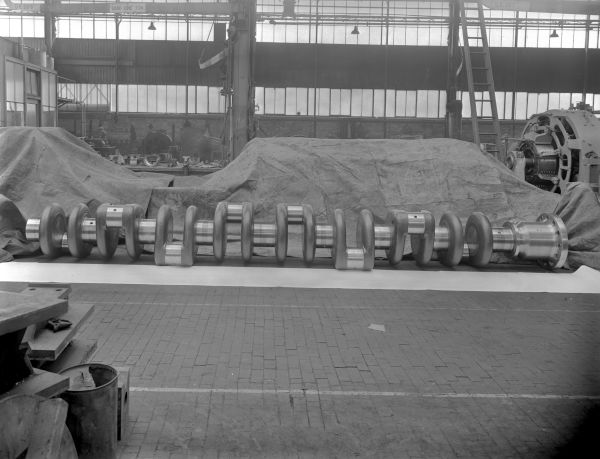 - Photograph, Harland and Wolff. Subject : SEMI-BUILT CRANKSHAFT IN ENGINE WORKS FOR IRAQ ENGINES.