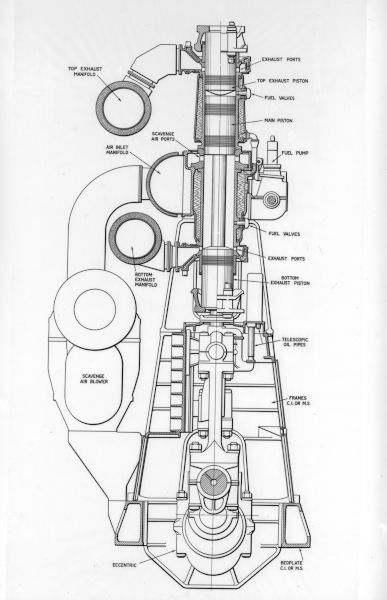 - Photograph, Harland and Wolff. Subject : DRAWING: CROSS SECTION OF DIESEL ENGINE.