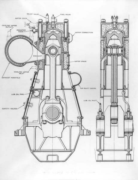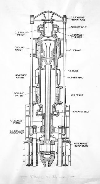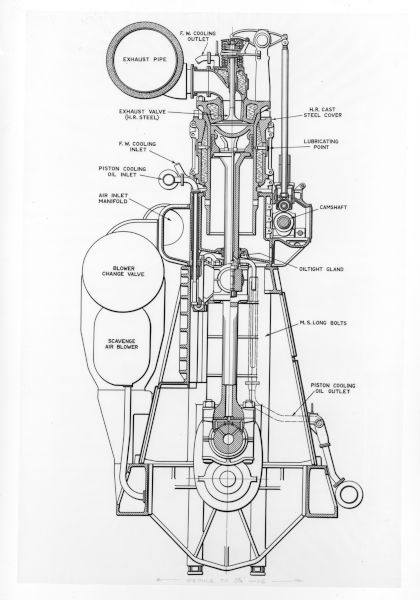 - Photograph, Harland and Wolff. Subject : DRAWING: CROSS SECTION OF DIESEL ENGINE CYLINDER.