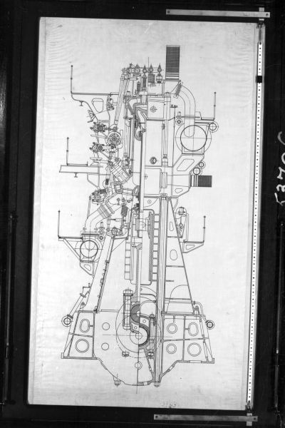 - Photograph, Harland and Wolff. Subject : DRAWING: SIDE ELEVATION OF ENGINE ROOM LAYOUT.