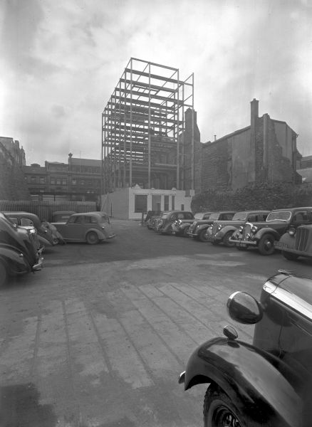- Photograph, Harland and Wolff. Subject : STEELWORK ERECTED FOR BUILDING ON BLITZED SITE AT 38 DONEGALL PLACE, BELFAST.