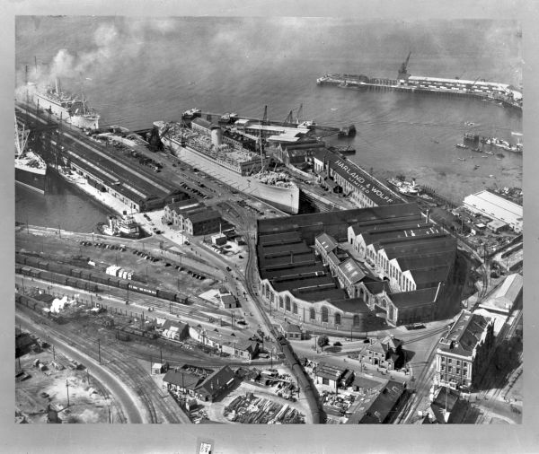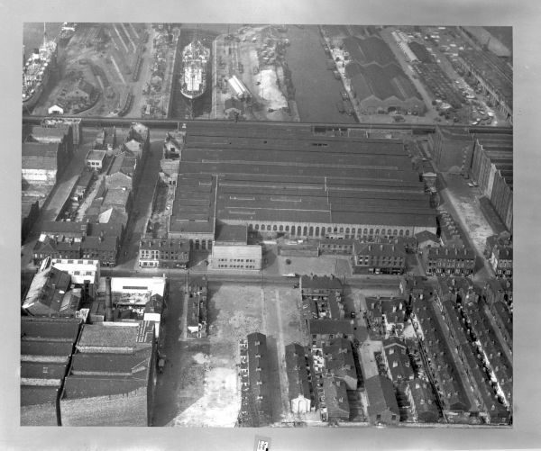 - Photograph, Harland and Wolff. Subject : AERIAL PHOTOGRAPH OF LIVERPOOL WORKS (copy of 5387).