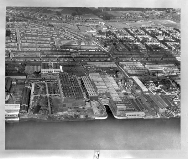- Photograph, Harland and Wolff. Subject : AERIAL PHOTOGRAPH OF SCOTSTOUN WORKS, GLASGOW (copy of 5390).