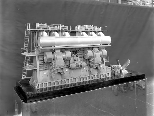 - Photograph, Harland and Wolff. Subject : MODEL DIESEL ENGINE, 3/4 FRONT.
