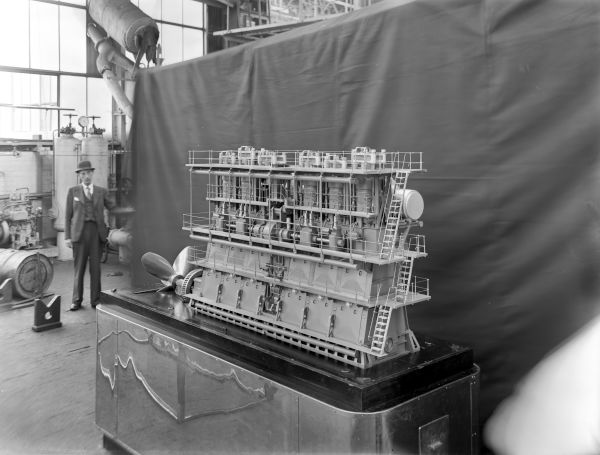 - Photograph, Harland and Wolff. Subject : MODEL DIESEL ENGINE, BACK.