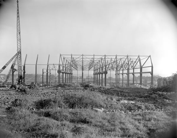 - Photograph, Harland and Wolff. Subject : STEEL FRAMING OF COURTAULD'S FACTORY, CARRICKFERGUS.