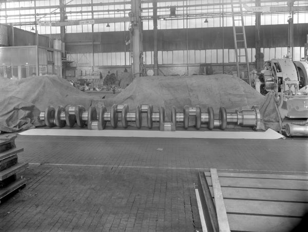 - Photograph, Harland and Wolff. Subject : SEMI-BUILT CRANKSHAFT IN ENGINE WORKS FOR IRAQ ENGINES.