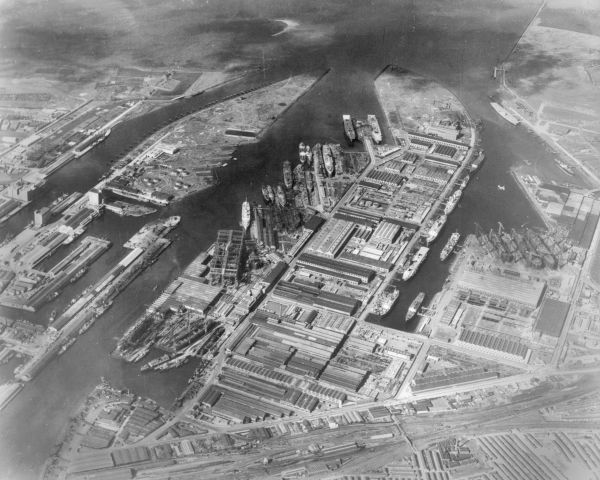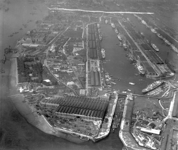 - Photograph, Harland and Wolff. Subject : AERIAL VIEW OF NORTH WOOLWICH WORKS, LONDON.