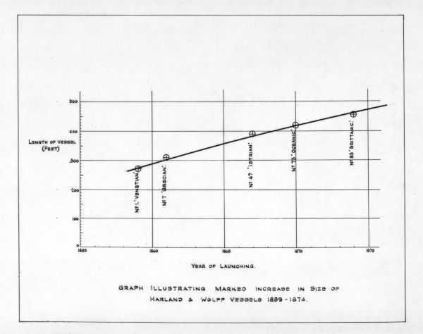 - Photograph, Harland and Wolff. Subject : GRAPH SHOWING MARKED INCREASE IN SIZE OF HARLAND & WOLFF VESSELS 1859 - 1874.