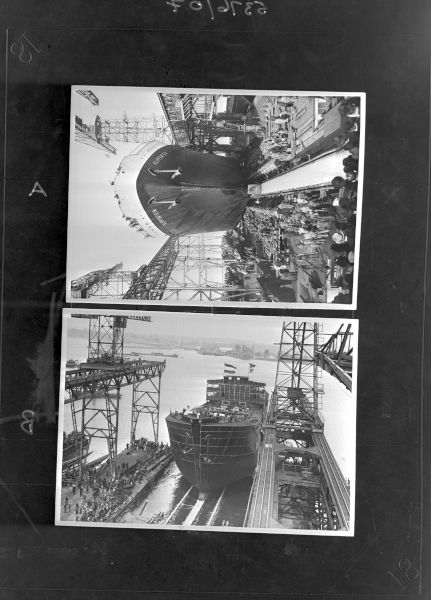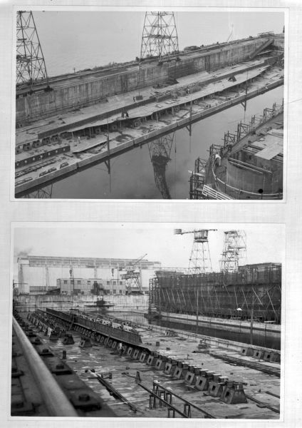 - Two photographs copied on negative, Harland and Wolff. Subject : SHIPBUILDING IN DOCK (HOLLAND).