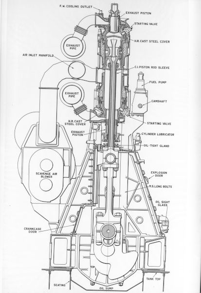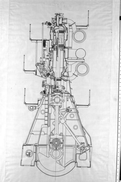 - Photograph, Harland and Wolff. Subject : DRAWING: CROSS SECTION OF DIESEL ENGINE.
