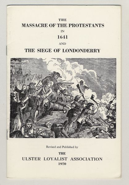 - Leaflet entitled 'The Massacre of the Protestants in 1641 and The Seige of Londonderry' revised and published by the Ulster Loyalist Association. An organisation which emerged in 1969 and included William Craig and Rev. Martin Smyth. The organisation pushed the Northern Ireland government to adopt a stronger policy.