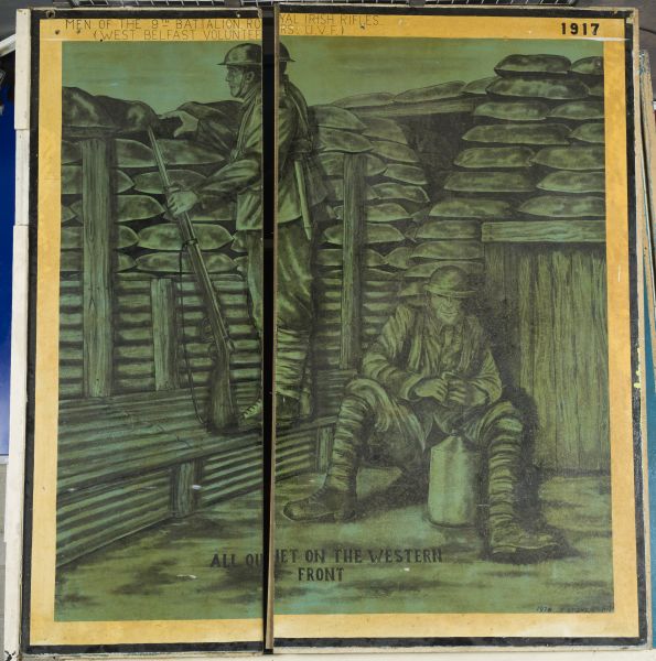 First World War soldiers from the 9th Royal Irish Rifles in the trenches.