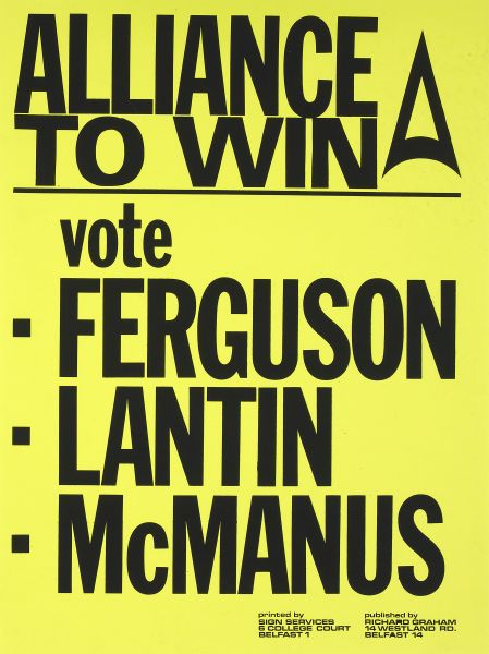 - Northern Ireland Local Govt. Elections, 30th May 1973. Alliance Party, Belfast area H. 'Vote Ferguson, Lantin, McManus.' Printed black on yellow. The Alliance candidates in Belfast area H were John Ferguson, Maureen McManus and Hannah Lantin. Ferguson received 2,271 first preference votes and was elected, however, the other two candidates were unsuccessful.