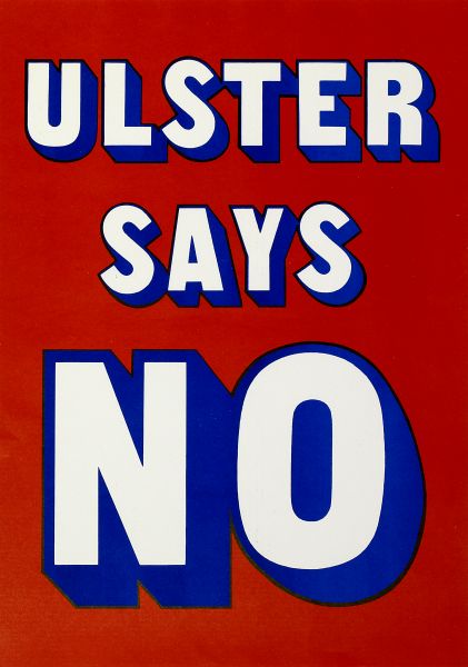 - Poster issued by the Grand Orange Lodge of Ireland, 'Ulster Says No.' Printed white and blue on a red background. This iconic poster from 1985 featured heavily in unionist protests against the Anglo-Irish Agreement after the signing of the Agreement at Hillsborough in November of that year.