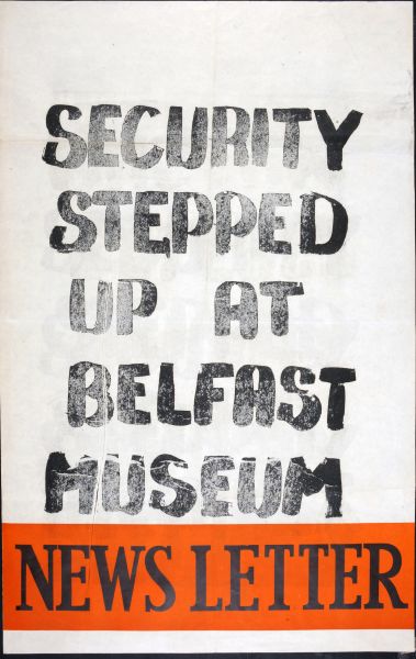 - Poster issued by the Newsletter, 'Security Stepped up at Belfast Museum.'