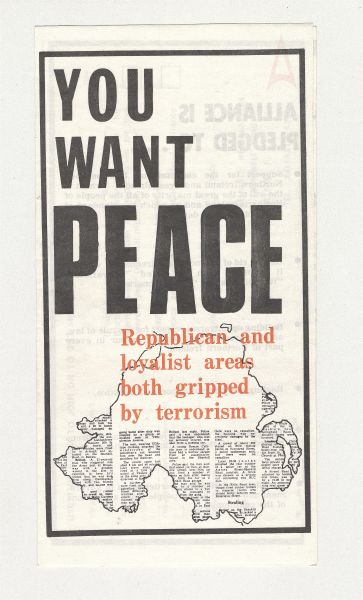 - Leaflet published by the Alliance Party, 'You Want Peace - Republican & Loyalist areas both gripped by Terrorism. Alliance is for You.' An early recruiting leaflet from Alliance. The Alliance Party of Northern Ireland, often referred to as Alliance, was formed in April 1970. From the outset it drew its support from across the religious divide and from those primarily seeking reform within Northern Ireland and an improvement in community relations. Although its base of support was biased towards the middle class it initially also gained the support of many former Northern Ireland Labour Party voters.