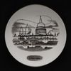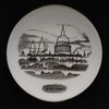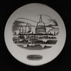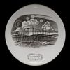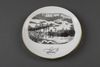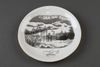 - Round plate made of glazed bone china with a silhouetted depiction of the Clifton Suspension Bridge, transfer printed, white plate with grey and black design with gold edging