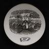 - Round plate made of glazed bone china with a silhouetted depiction of Tintern Abbey, transfer printed, white plate with grey and black design with gold edging