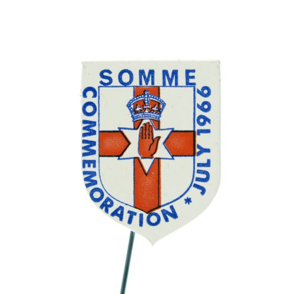 - Badge with pin fastening inscribed ' Somme Commemoration July 1966'. 'Somme Commemoration Badge' was first issued by Northern Ireland Government to 'Somme' veterans. July 1966